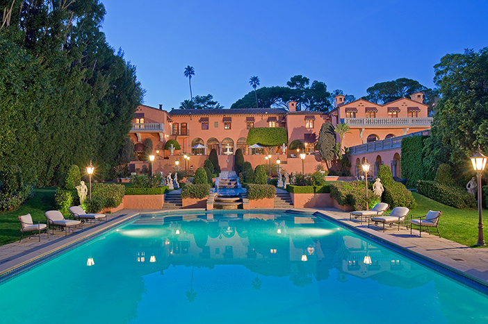 This exquisite home and its gardens have been the backdrop for scenes in “The Godfather,” “The Bodyguard,” “Topaz,” “Into The Night” and “Fletch.” The estate includes 29 bedrooms, 40 bathrooms, two guest houses and a separate apartment. Total privacy on almost four acres and only three blocks from Sunset Boulevard, the star studded Beverly House can now be leased at $600,000 per month or for sale at $115 million