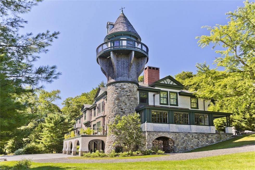 Built in 1886 to accompany Norumbega Castle in Camden, this Victorian carriage house—now listed at $3.74 million—features a 150-foot tower overlooking Penobscot Bay.
