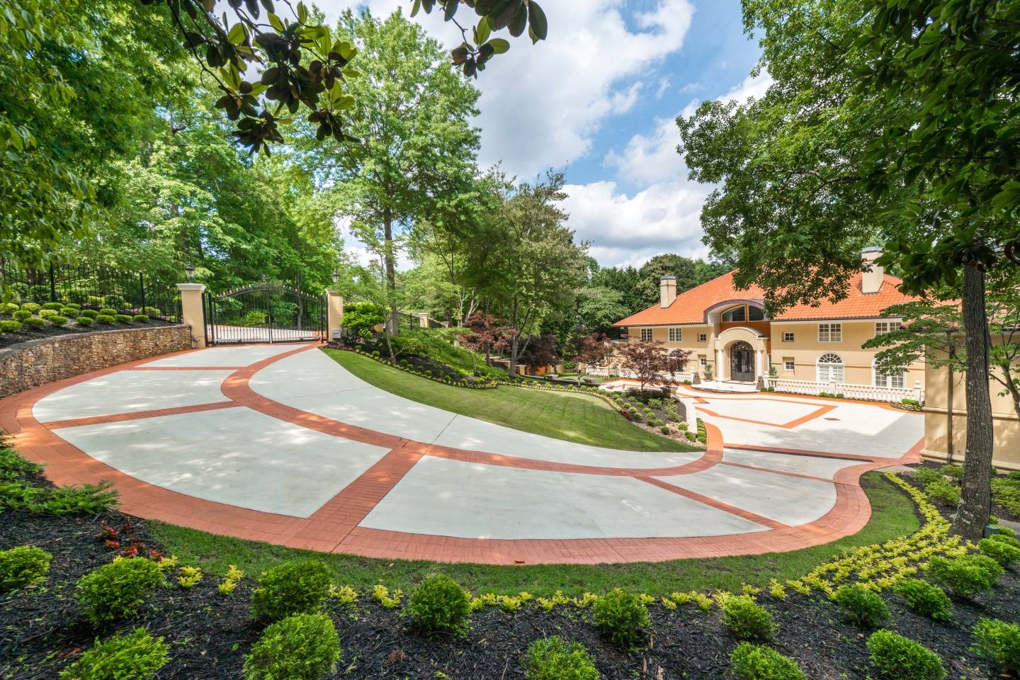 Outfitted with rich woods, marble and stone accents, coffered ceilings, crown moldings, and Palladian windows, the palatial residence—which measures in at 11,964 square feet—is situated on 1.26 gated, private acres in the coveted neighborhood of North Buckhead. The grand estate’s grounds are dotted with fountains, a sports court, a pool and spa, and a swim-up bar and separate cabana.