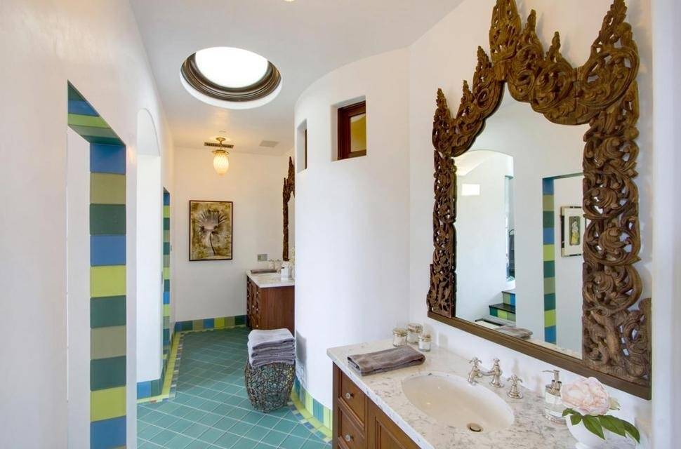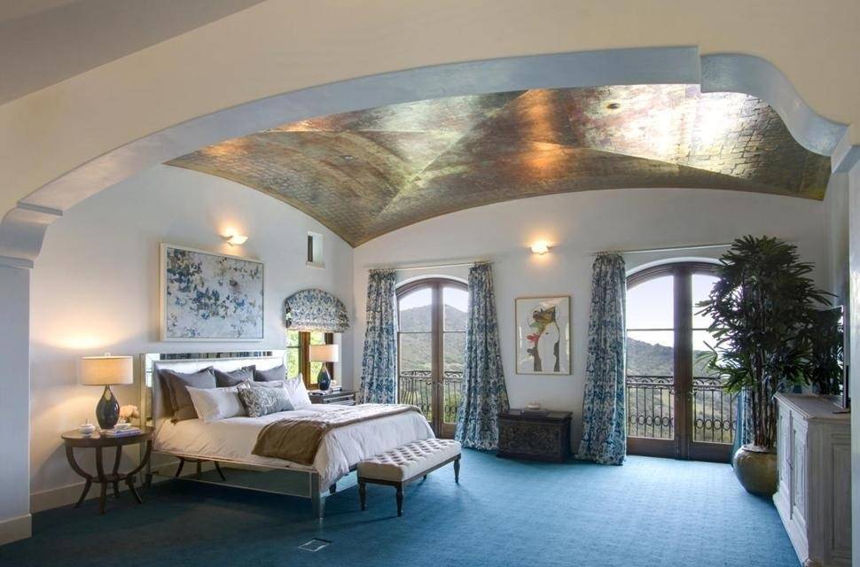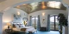 Aptly named “Villa Sorriso” (which translates to “smile villa” in Italian), the residence’s 20,000-square-foot main house’s living area is comprised of five bedrooms, six full baths, five half baths, a theater, a library an elevator, climate-controlled art and wine cellars, a bridge gallery, a viewing tower overlooking the Valley, and three safe rooms.