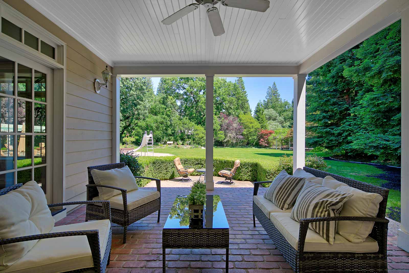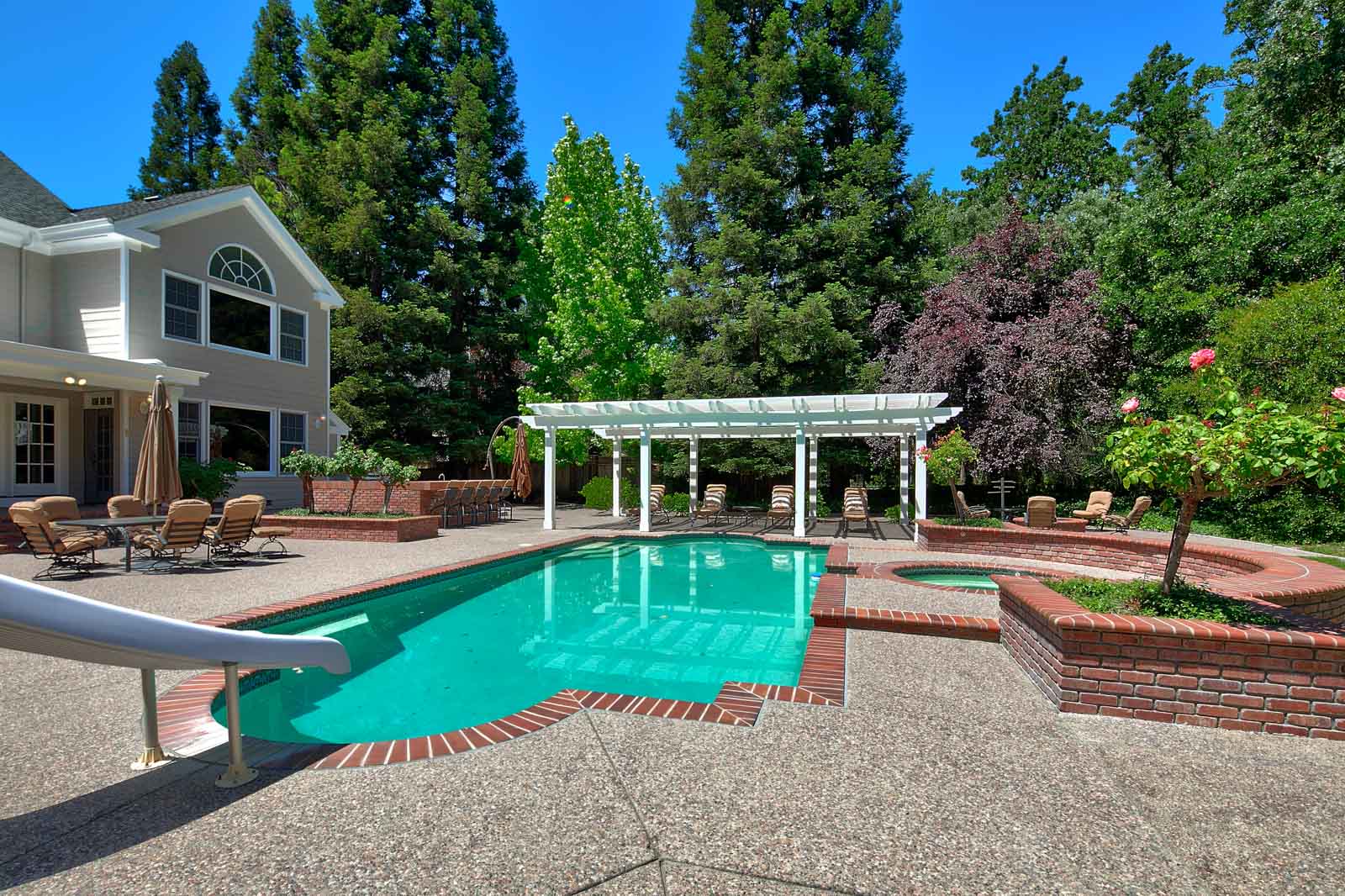 Tranquil and private backyard oasis. Frolic in the pool with slide and spa, relax at the adjacent firepit or entertain at the barbeque island with seating. Wonderful indoor/outdoor flow as well: the beautiful property can be appreciated from the master balcony, from the inviting front porch, and from the covered veranda that is accessed via French doors from the dining and living rooms. Zoned for top-rated San Ramon Valley schools: Green Valley Elementary, Los Cerros Middle, and Monte Vista High Schools.