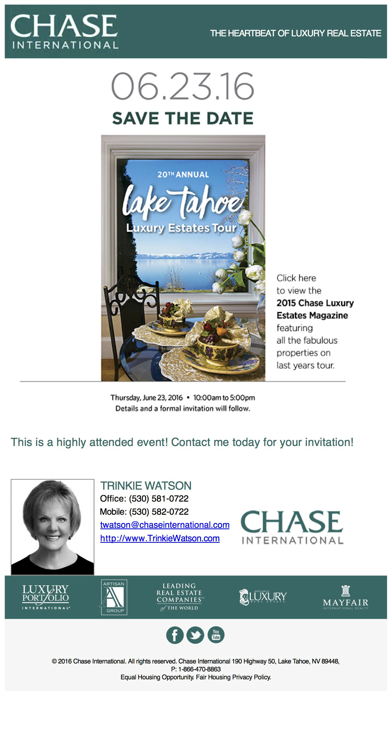 It’s that time of year again to enjoy a fabulous day at the 20th Annual Chase International Lakefront and Luxury Estates Tour Around Lake Tahoe.