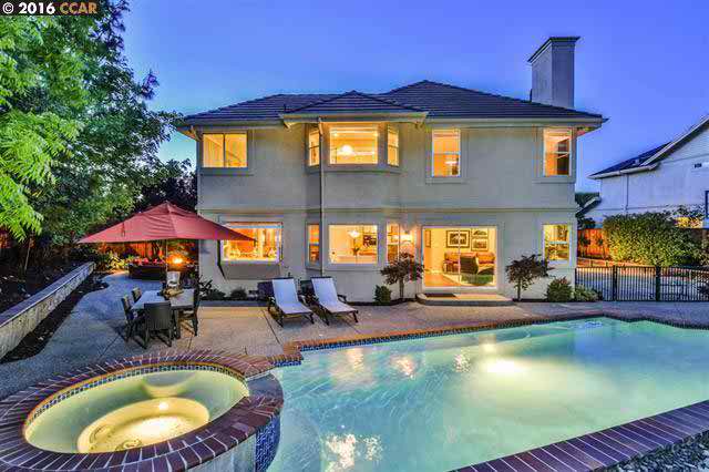 This gorgeous home at 455 Kingston Drive in Danville, California, boasts luxurious indoor-outdoor living and captivating views of Mt. Diablo. Impeccably remodeled, this four-bedroom (with a stunning bonus room), three-bathroom home is exquisite in every way. Other features include a gourmet kitchen with granite, SS Wolfe appliances, and a Sub-Zero refrigerator. Outside, there is a sparkling pool, spa, and waterfall in a spectacular landscaped private yard. The home is for sale for $1,349,000.