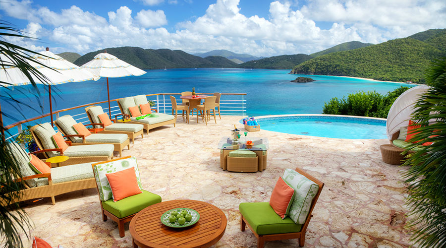 “Villa Cliff House” is the ultimate, super-luxury island home. The appointments are superior. The setting is ethereal. You’re sitting in your open-air great room with the waves crashing below, as you relax after a stroll home from Peter Bay’s white sand beach. The scent of jasmine greets you. Tropical birds catch your eye as you glance down at a sailboat gliding towards Maho Bay. Your guests are enjoying a dip in your infinity-edge pool. Another guest wraps up her session in your private gym and suggests a visit to one of the dozen beaches located minutes from your home. Everyone retreats to their suite to prepare for the day. Before walking out of the master suite you look out towards the British Virgin Islands and take it all in. Friends. Family. Home. This is paradise.