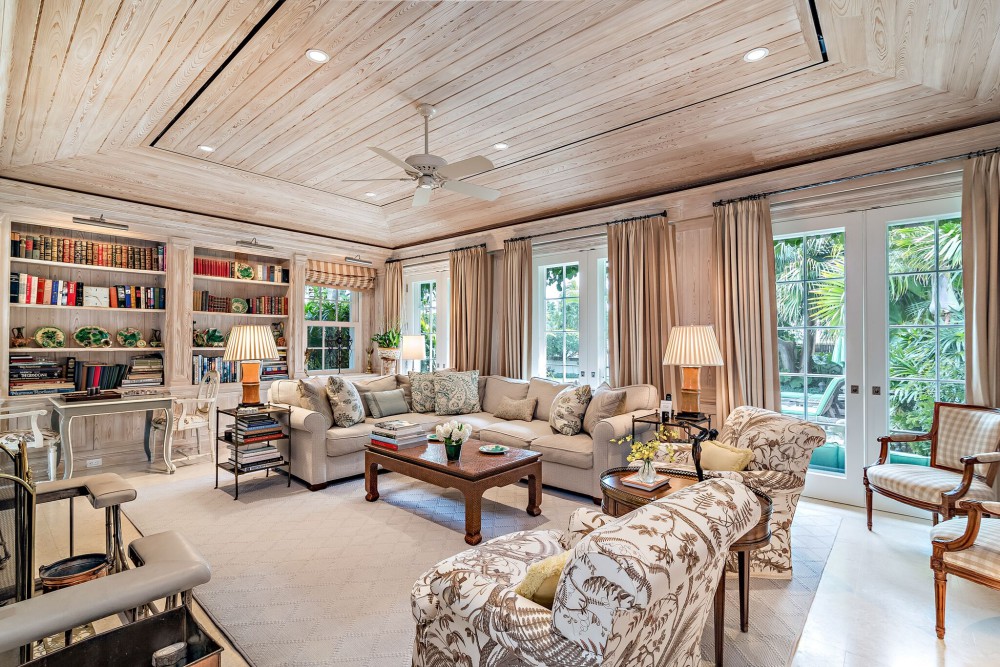 This Bermuda style home on Everglades Island epitomizes elegance and classical style. The home has 175′ of waterfront and encompasses 9,356 square feet. It has a most desirable western view with beautiful sunsets. This home was totally renovated in 2008 by Palm Beach architect, Tom Kirchoff. It is built around an atrium and all rooms open to the water or garden spaces. The tropical gardens were designed by Mario Nievera. This house has a spacious, comfortable master suite, five additional bedrooms, seven bathrooms and two powder rooms. The house flows beautifully for entertaining. Features include an exceptional kitchen, wine room, pool, spa, full house generator, impact windows and doors, lutron light system and a water filtration system. Truly a unique opportunity.
