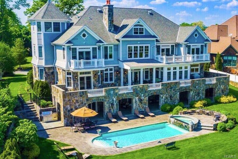 Located on a crest overlooking the Long Island Sound, this breathtaking waterfront home is an entertainer’s oasis that boasts a seamless blend of indoor and outdoor living. Meticulously and luxuriously crafted 5 bed, 9 baths with sweeping water views and unparalleled architectural detailing inside and out. Double cherry doors open to grand entry where water views are immediately brought into focus with a wall of windows and French doors that stretch to 22 ft high ceiling. Open floor plan with Chef’s kitchen, eat-in island, breakfast nook, dining rm, living room with two-story dual stone fireplace, family room, parlor and 2 half baths. Three separate staircases lead to 2nd floor with 3 bedrooms (each with their own terrace & private bath) and the master suite (master bath, balcony and spiral staircase that leads to a private reading turret). Additional features- media room with full bath & finished 4,000 sqft walk-out lower level w/ entertainment room, office, bedroom and 2 full baths. Outside features include stone patio, balconies on all levels, custom stone grotto, pool and spa.