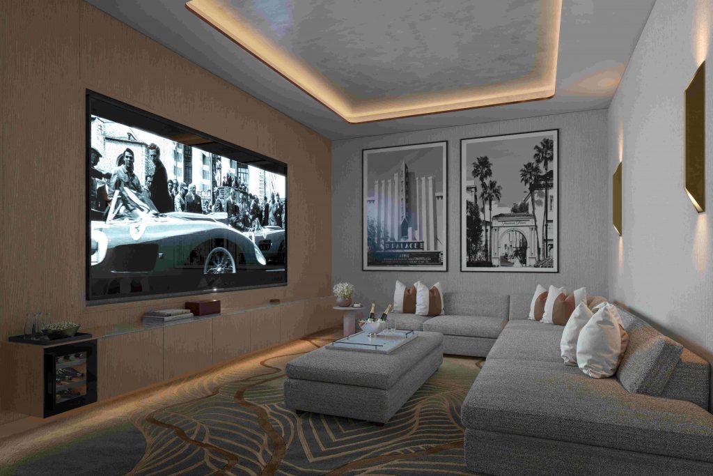 The interiors, conceptualized by the acclaimed British design studio 1508 London, are a masterclass in refined restraint. Soft, muted palettes, natural textures, and artful symmetry define spaces that evoke a timeless European aesthetic. From the statement-making grand spiral staircase that ushers residents into a light-filled, double-height living space, to the private cinema lounge lined with evocative black-and-white photography, every detail is composed with an eye for enduring style rather than fleeting trends.