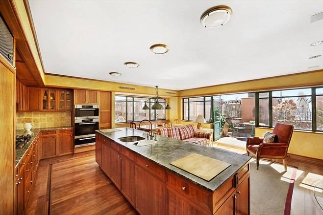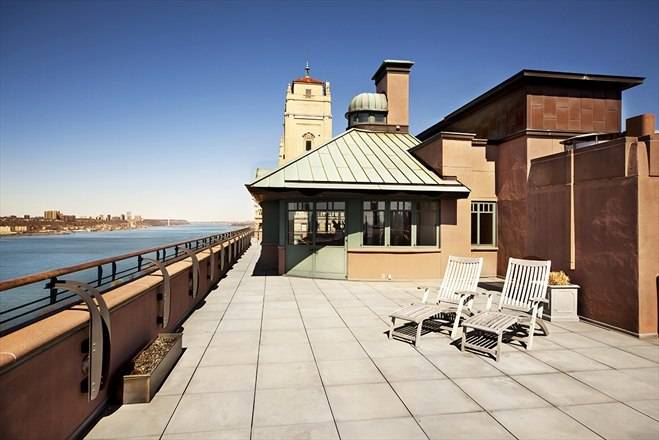 Equipped with a private elevator, the residence also boasts a glass-enclosed solarium on its highest level that hovers over the River, along with its own 2,000-square-foot outdoor deck.