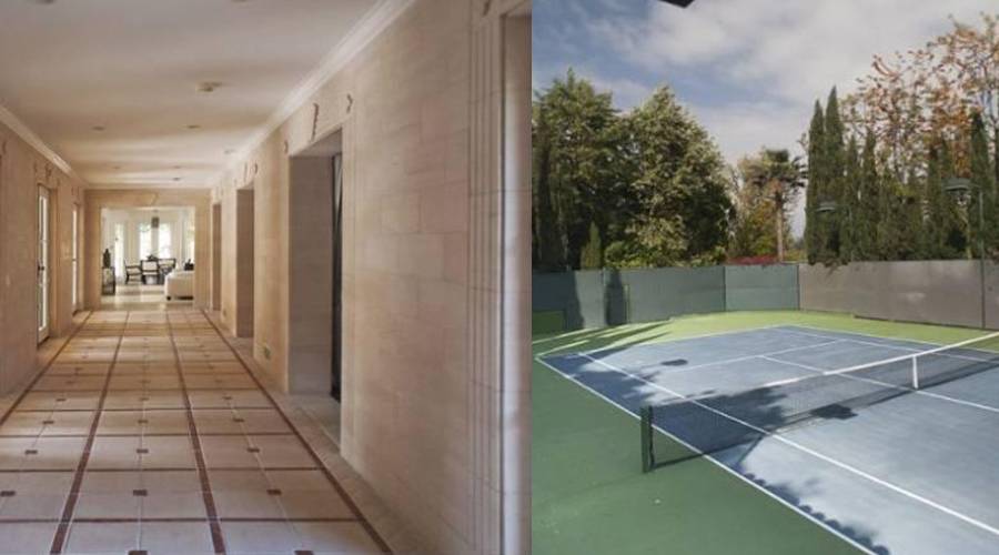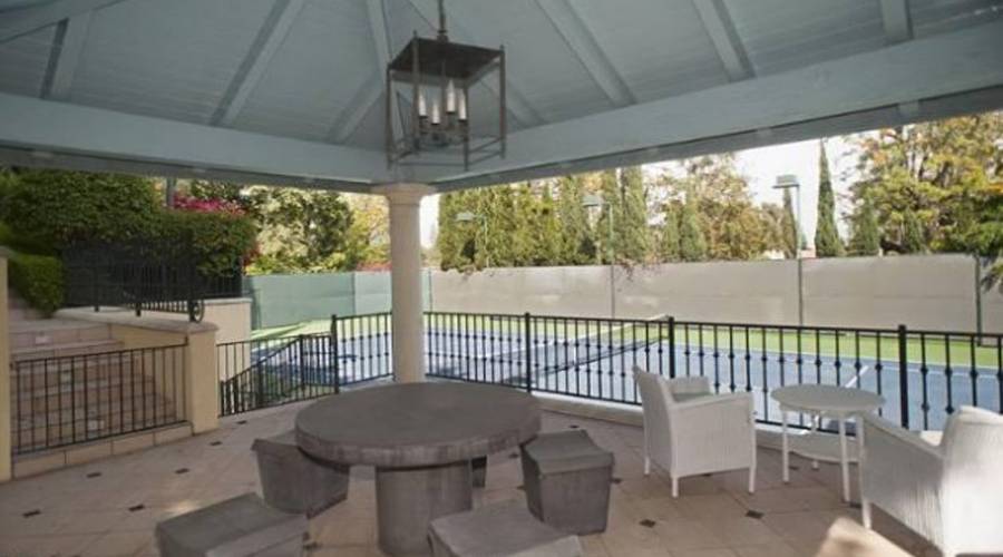 Outside, the stunning grounds feature a 3,5000 square foot garden, pool, outdoor dining area and terrace, tennis court and plenty of pretty ivy.