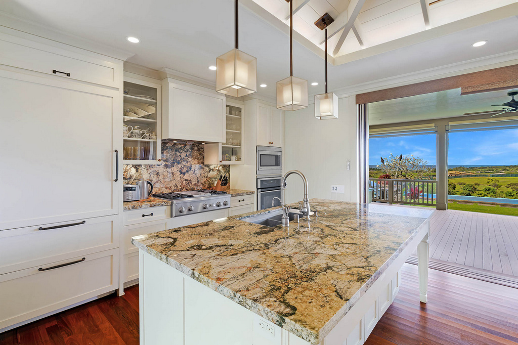 An ultimate resort living experience located in the Kahalawai neighborhood of the Private Resort on Kauai’s South Shore known as Kukuiula. Situated on over 19,000 sq. ft. lot the architect uniquely positioned this single level home for the ultimate privacy from the neighboring lots on either side. The entire backyard is your playground to swim or relax gazing at the sweeping ocean views & magnificent sunsets.