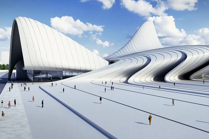 Haute Living cover star Zaha Hadid recently added this incredible structure in Baku, Azerbaijan to her design portfolio. Zaha Hadid Architects completed the Heydar Aliyev Centre as a modern cultural center composed of fluid and reflective surfaces, a place for concerts, exhibitions, conventions and more.
